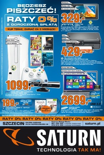 Najnowsza gazetka promocyjna marketu Saturn w Szczecinie – „Będziesz piszczeć!”.