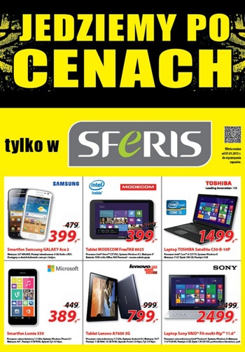 Gazetka promocyjna sklepu internetowego Sferis – „Jedziemy po cenach”.