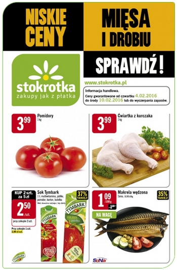 Nowa gazetka promocyjna sieci handlowej Stokrotka – „Niskie ceny mięsa i drobiu”.
