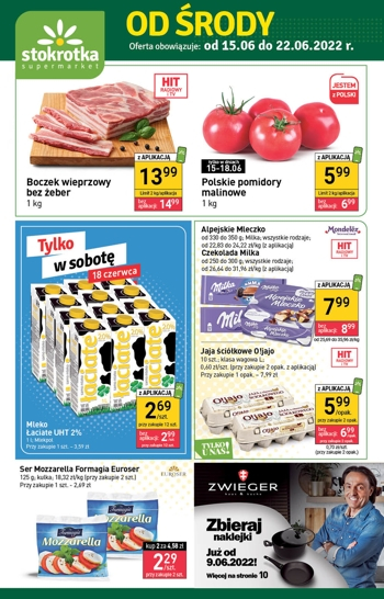 ** – cena tylko w dniach 15-18.06 z aplikacją Nasza Stokrotka. Limit dzienny 2 kg. Cena bez aplikacji wynosi 6,99 zł.