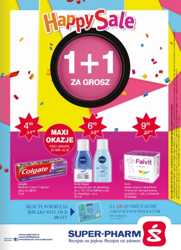 Nowa gazetka promocyjna Super-Pharm – „Happy Sale 1+1 za grosz”.