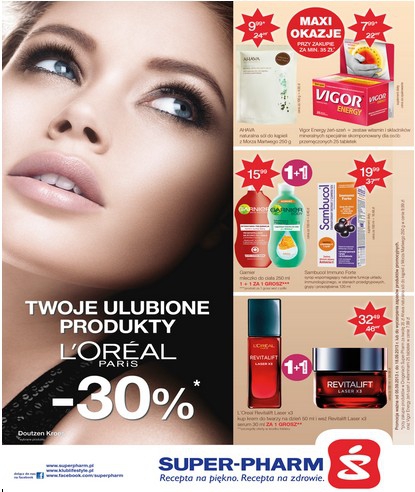 Nowa gazetka promocyjna Super-Pharm – „Twoje ulubione produkty L’Oreal 30% taniej”.