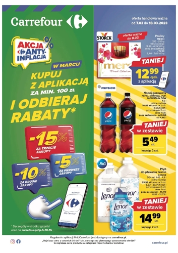 {loadposition linkCarrefour2} 'W marcu kupuj z aplikacją za minimum 100 zł i odbieraj rabaty -5% za pierwsze zakupy, -10% za drugie zakupy i -15% za trzecie zakupy' - nowa gazetka promocyjna sieci marketów Carrefour. Polecane promocje z gazetki Carrefour:…