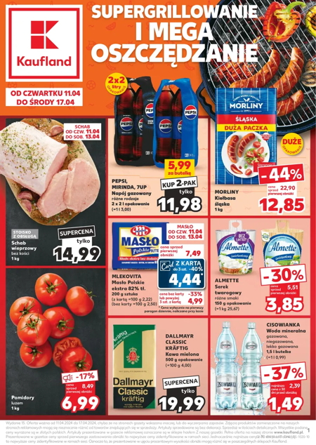 'Supergrillowanie i mega oszczędzanie' - nowa gazetka promocyjna sieci marketów Kaufland. Polecane promocje z gazetki Kaufland: Kiełbasa śląska Morliny 1 kg - 12,85 zł. Pepsi, Mirinda lub 7Up 2x2 L - 11,98 zł. Pomidory 1 kg - 6,99 zł.…