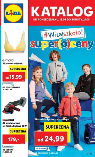Nowa gazetka promocyjna sieci sklepów Lidl. Polecane promocje z gazetki sklepów Lidl: Bluza dziecięca w stylu college Lupilu - od 24,99 zł. Biustonosz damski Esmara - od 15,99 zł. Akumulatorowa szlifierka kątowa Parkside 20 V - 179 zł. …