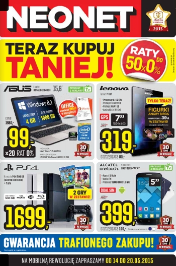 {loadposition linkNeonet} Nowa gazetka promocyjna Neonet - "Teraz kupuj taniej!". Polecane promocje z gazetki Neonet: Telewizor 4k Ultra HD 42" LG 42UB820V - 1980 zł. Laptop Toshiba C55-A-1JL - 1690 zł. Smartfon Alcatel Onetouch Pop C7 - 390 zł.…