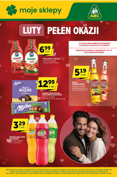 {loadposition linkABC} 'Luty pełen okazji' - nowa gazetka promocyjna sieci sklepów ABC. Polecane promocje z gazetki ABC: Ketchup Tortex 470 g - 6,99 zł. Czekolada lub Alpejskie Mleczko Milka - 12,99 zł. Napój Hellena z sokiem 1,5 L -…