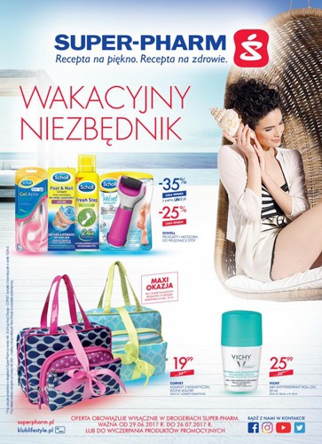 Nowa gazetka promocyjna Super-Pharm - "Wakacyjny niezbędnik". Polecane promocje z gazetki Super-Pharm: Komplet 3 kosmetyczek różne kolory - 19,99 zł. Antyperspirant Vichy 50 ml - 25,99 zł. Żel antybakteryjny do rąk do stosowania bez użycia wody 50 ml…