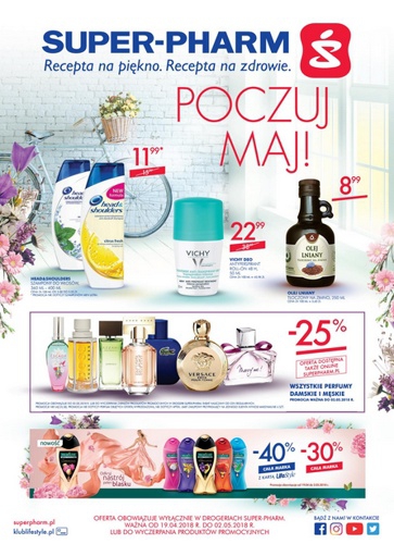 'Poczuj maj!' - nowa gazetka promocyjna Super-Pharm. Polecane promocje z gazetki Super-Pharm: Szampon do włosów Head&Shoulders różne rodzaje - 11,99 zł. Antyperspirant roll-on Vichy Deo 50 ml - 22,99 zł. Olej lniany tłoczony na zimno 250 ml - 8,99…