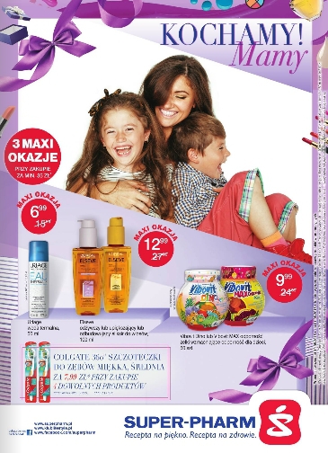 Nowa gazetka promocyjna Super-Pharm - "Kochamy mamy". Polecane promocje z gazetki Super-Pharm: Antyperspirant w sprayu Rexona 250 ml - 9,99 zł. Papier toaletowy Velvet XXL 8 rolek - 6,99 zł. Szampon do włosów Bioelixire Oil 200 ml -…