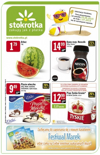 Nowa gazetka promocyjna sieci handlowej Stokrotka. Polecane promocje z gazetki Stokrotka: Arbuz 1 kg - 1,79 zł. Kawa rozpuszczalna Nescafe Classic 200 g - 14,99 zł. Ptasie Mleczko Wedel 380 g - 9,49 zł. Oferta ważna od…