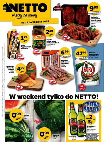 {loadposition linkNetto} Nowa gazetka promocyjna Netto - "W weekend tylko do Netto!". Polecane promocje z gazetki Netto: Karkówka w marynacie Henryk Kania 600 g - 9,99 zł. Kapsułki do zmywarki Fairy All in 1 91 sztuk - 47,99…