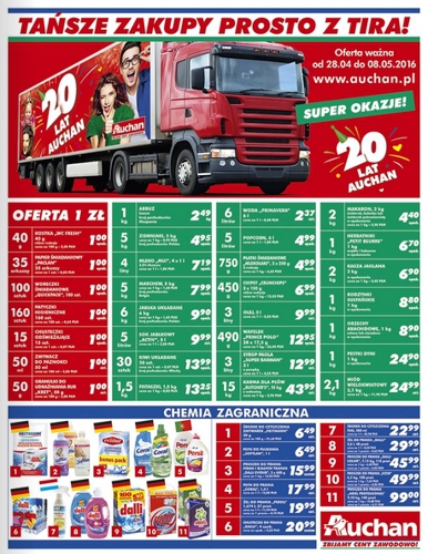{loadposition linkAuchan} Nowa gazetka promocyjna Auchan - "Tańsze zakupy prosto z TIRa!". Polecane promocje z gazetki Auchan: Kostka WC Fresh - 1 zł. Arbuz 1 kg - 2,49 zł. Olej 3 L - 9,99 zł. Oferta ważna od…
