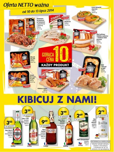 {loadposition linkNetto} Nowa gazetka promocyjna Netto - "Kibicuj z nami!". Polecane promocje z gazetki Netto: Bratwurst 520 g - 10 zł. Arbuz 1 kg - 1,49 zł. Naklejki na ścianę 3D - 7,99 zł. Oferta ważna od…