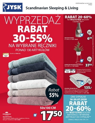 'Wyprzedaż' - nowa gazetka promocyjna sieci sklepów JYSK. Polecane promocje z gazetki Jysk: Rabat 30-55% na wybrane ręczniki. Rabat 20-60% na wszystkie wazony i doniczki. Rabat 20-60% na wszystkie kołdry, materace i artykuły do sypialni*. …