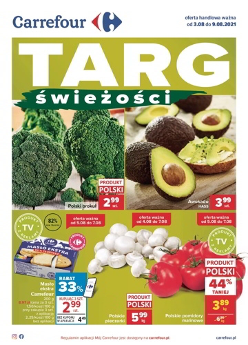 {loadposition linkCarrefour} 'Targ świeżości' - nowa gazetka promocyjna sieci marketów Carrefour. Polecane promocje z gazetki Carrefour: Polski brokuł 1 sztuka - 2,99 zł. Awokado Hass 1 sztuka - 3,99 zł. Masło ekstra Carrefour 3x200 g - 8,97 zł*. …
