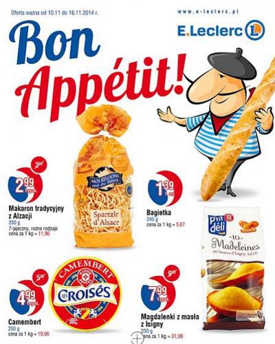 {loadposition linkEleclerc} Nowa gazetka promocyjna marketu E.Leclerc - "Bon Appetit". Polecane promocje z gazetki E.Leclerc: Bagietka 245 g - 1,39 zł. Camembert 250 g - 4,99 zł. Makaron tradycyjny z Alzacji 250 g - 2,99 zł. Oferta ważna…