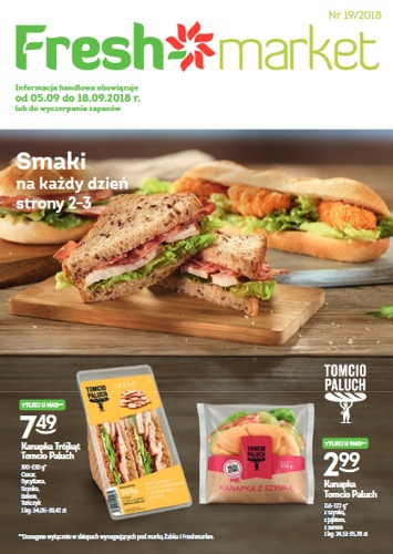 {loadposition linkFreshmarket} 'Smaki na każdy dzień' - nowa gazetka promocyjna sieci sklepów Freshmarket. Polecane promocje z gazetki Freshmarket: Kanapka Trójkąt Tomcio Paluch 190 g - 7,49 zł. Kanapka Tomcio Paluch 116 g - 2,99 zł. Bagietka Tomcio Paluch 210…