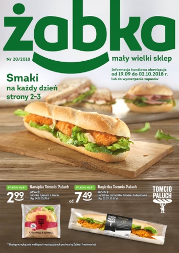 'Smaki na każdy dzień' - nowa gazetka promocyjna sieci sklepów Żabka. Polecane promocje z gazetki Żabka: Kanapka Trójkąt Tomcio Paluch 116 g - 7,49 zł. Kanapka Tomcio Paluch 116 g - 2,99 zł. Bagietka Tomcio Paluch 210 g -…