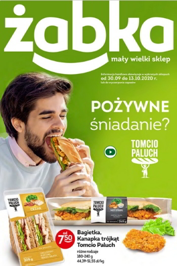 'Pożywne śniadanie?' - nowa gazetka promocyjna sieci sklepów Żabka. Polecane promocje z gazetki Żabka: Bagietka lub Kanapka trójkąt Tomcio Paluch różne rodzaje - od 7,50 zł. Kajzerka Tomcio Paluch różne rodzaje - 3,50 zł. Kanapka Tomcio Paluch Fit różne rodzaje…