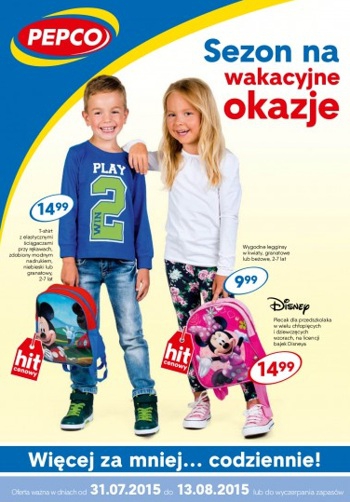 {loadposition linkPepco} Nowa gazetka promocyjna Pepco - "Sezon na wakacyjne okazje". Polecane promocje z gazetki Pepco: Plecak dla przedszkolaka na licencji bajek Disneya - 14,99 zł. Torebka z aplikacją w kształcie kocich uszu - 14,99 zł. Wygodne baleriny z…