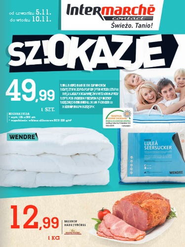 {loadposition linkIntermarche} Nowa gazetka promocyjna sieci handlowej Intermarche - "Sz!Okazje". Polecane promocje z gazetki Intermarche: Kołdra Lulea 155x200 cm - 49,99 zł. Baleron Madej Wróbel 1 kg - 12,99 zł. Śliwki w czekoladzie Jutrzenka 100 g - 1,99 zł.…