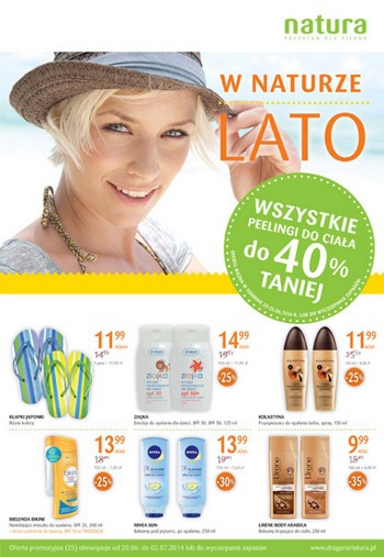 {loadposition linkNatura} Nowa gazetka promocyjna Drogerii Natura - "W Naturze lato". Polecane promocje z gazetki Drogerii Natura: Klapki japonki - 11,99 zł. Emulsja do opalania dla dzieci Ziajka 125 ml - 14,99 zł. Balsam do ciała Evree 400 ml…