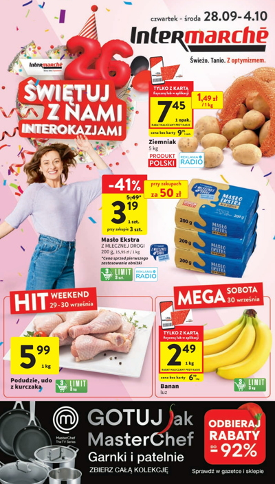 {loadposition linkIntermarche2} 'Świętuj z nami Interokazjami' - nowa gazetka promocyjna sieci sklepów Intermarche Polecane promocje z gazetki Intermarche: Ziemniaki 5 kg - 7,45 zł*. Masło ekstra Z mlecznej drogi 200 g - 3,19 zł**. Banany 1 kg - 2,49…