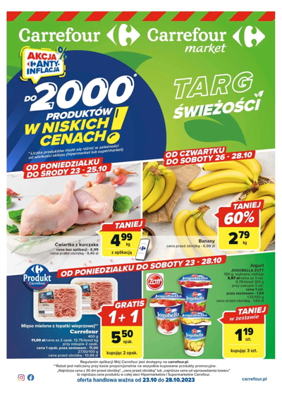 {loadposition linkCarrefour3} 'Do 2000 produktów w niskich cenach! Targ świeżości' - nowa gazetka promocyjna sieci marketów Carrefour. Polecane promocje z gazetki Carrefour: Ćwiartka z kurczaka 1 kg - 4,99 zł*. Banany 1 kg - 2,79 zł**. Mięso mielone z…
