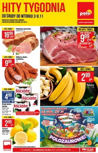 {loadposition linkPoloMarket2} 'Hity tygodnia' - nowa gazetka promocyjna sieci sklepów Polo Market. Polecane promocje z gazetki Polo Market: Karkówka bez kości 1 kg - 9,99 zł*. Banany 1 kg - 2,99 zł. Polędwica łososiowa Madej Wróbel 1 kg -…
