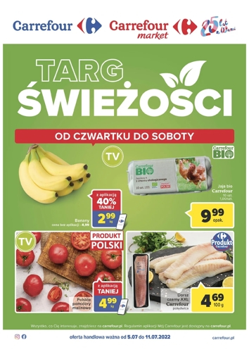 {loadposition linkCarrefour} 'Targ świeżości' - nowa gazetka promocyjna sieci marketów Carrefour. Polecane promocje z gazetki Carrefour: Banany 1 kg - 2,99 zł*. Jaja BIO Carrefour 10 sztuk - 9,99 zł. Polskie pomidory malinowe 1 kg - 4,99 zł*. …