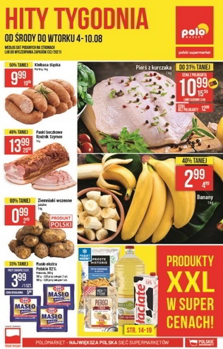 {loadposition linkPoloMarket} 'Hity tygodnia' - nowa gazetka promocyjna sieci sklepów Polo Market. Polecane promocje z gazetki Polo Market: Pierś z kurczaka 1 kg - 10,99 zł*. Banany 1 kg - 2,99 zł. Kiełbasa śląska Morliny 1 kg - 9,99…