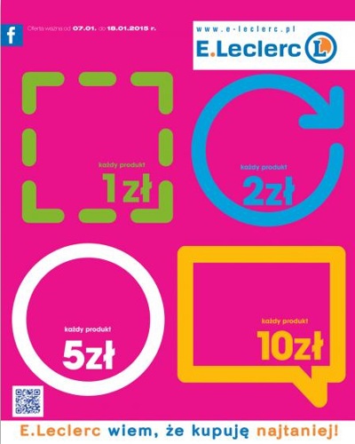 {loadposition linkEleclerc} Nowa gazetka promocyjna sieci handlowej E.Leclerc. Polecane promocje z gazetki E.Leclerc: Bańki mydlane - 1 zł. Temperówka - 1 zł. Mata na stół - 1 zł. Oferta ważna od 7.01 do 18.01 lub do wyczerpania zapasów.