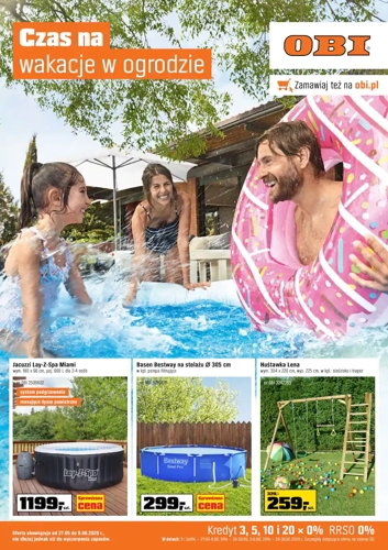 {loadposition linkObi} 'Czas na wakacje w ogrodzie' - nowa gazetka promocyjna sieci marketów Obi. Polecane promocje z gazetki Obi: Jacuzzi Lay-Z Spa Miami - 1199 zł. Basen Bestway na stelażu Ø305 cm - 299 zł. Huśtawka Lena -…
