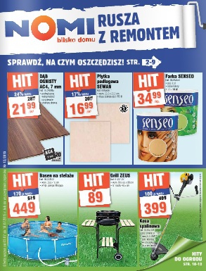 Nowa gazetka promocyjna Nomi - "Nomi rusza z remontem". Polecane promocje z gazetki Nomi: Płytka podłogowa Sewan m² - 16,99 zł. Farba Senseo 2,5 L - 34,99 zł. Basen na stelażu - 449 zł. Oferta ważna od…