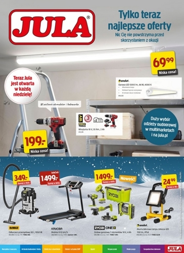 {loadposition linkJula} 'W Nowym Roku zadbaj o formę! Mamy produkty, które przyspieszą Ci puls. Teraz nic Cię nie powstrzyma!' - nowa gazetka promocyjna sieci handlowej Jula. Polecane promocje z gazetki Jula: Bieżnia Kayoba - 1299 zł. Regał magazynowy Hard…