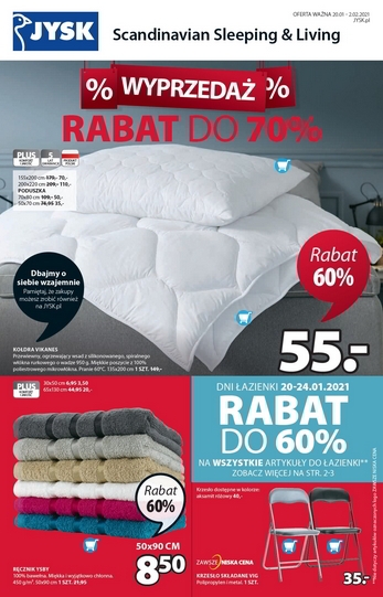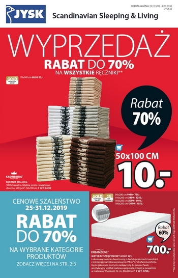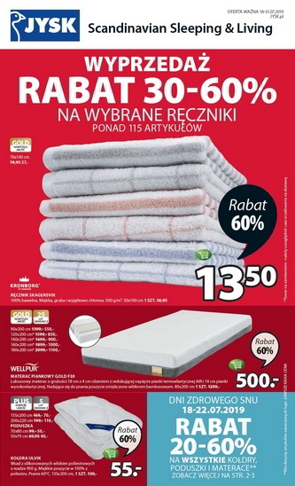 'Wyprzedaż' - nowa gazetka promocyjna sieci sklepów JYSK. Polecane promocje z gazetki Jysk: Rabat 30-60% na wybrane ręczniki. Rabat 20-60% na wybrane latarnie ogrodowe. Rabat 20-50% na wybrane biurka. Oferta ważna od czwartku 18.07…