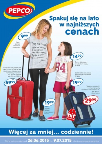 {loadposition linkPepco} Nowa gazetka promocyjna Pepco - "Spakuj się na lato w najniższych cenach". Polecane promocje z gazetki Pepco: Walizka na kółkach z wyciąganą rączką i dodatkowymi kieszeniami - 29,99 zł. Tunika dziewczęca z nadrukiem kotka - 14,99 zł.…