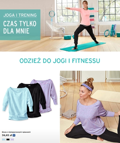 Nowa oferta Tchibo - "Joga i trening". Polecane promocje z gazetki Tchibo: Bluza z nietoperzowymi rękawami - 59,95 zł. Koszulka wellness - 49,95 zł. Spodnie do jogi - 79,95 zł. Oferta ważna do wyczerpania zapasów.