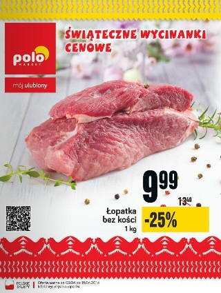 {loadposition linkPoloMarket} Nowa gazetka promocyjna Polo Market - "Świąteczne wycinanki cenowe". Polecane promocje z gazetki Polo Market: Łopatka bez kości 1 kg - 9,99 zł. Filet z piersi kurczaka 1 kg - 12,99 zł. Boczek bez kości ze skórą…