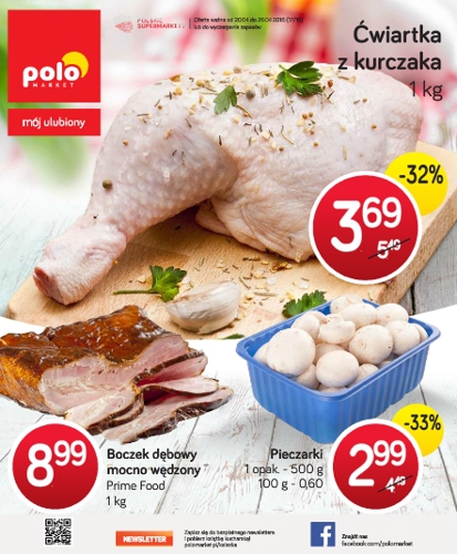 {loadposition linkPoloMarket} Nowa gazetka promocyjna Polo Market. Polecane promocje z gazetki Polo Market: Ćwiartka z kurczaka 1 kg - 3,69 zł. Boczek dębowy mocno wędzony 1 kg - 8,99 zł. Pieczarki 500 g - 2,99 zł. Oferta ważna…