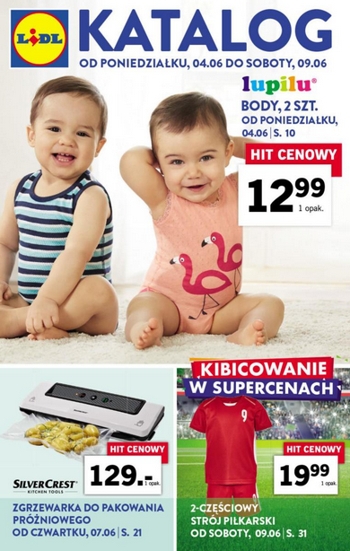 {loadposition linkLidl} Nowa gazetka promocyjna sieci sklepów Lidl. Polecane promocje z gazetki sklepów Lidl: Body niemowlęce Lupilu 2 sztuki - 12,99 zł. Zgrzewarka do pakowania próżniowego SilverCrest - 129 zł. 2-częściowy strój piłkarski - 19,99 zł. …