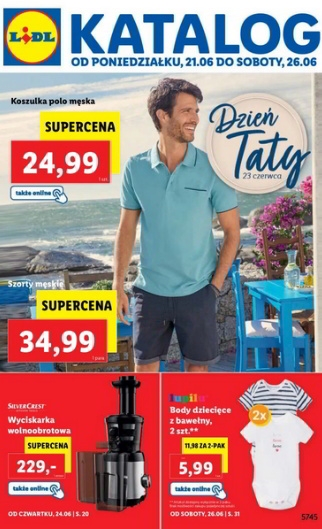 {loadposition linkLidl} Nowa gazetka promocyjna sieci sklepów Lidl. Polecane promocje z gazetki sklepów Lidl: Koszulka męska polo - 24,99 zł. Wyciskarka wolnoobrotowa SilverCrest - 229 zł. Body niemowlęce z bawełny Lupilu 2-pak - 11,98 zł. Oferta ważna…