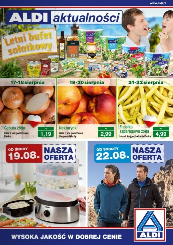 {loadposition linkAldi} Nowa gazetka promocyjna Aldi. Polecane promocje z gazetki Aldi: Bokserki męskie 3 pary - 29,99 zł. Jegginsy damskie - 39,99 zł. Latarka kieszonkowa - 11,99 zł. Oferta ważna od 19.08 do wyczerpania zapasów.