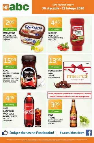 {loadposition linkABC} Nowa gazetka promocyjna sieci sklepów ABC. Polecane promocje z gazetki ABC: Margaryna Delma Extra 450 g - 2,89 zł. Ketchup Pudliszki 480 g - 4,45 zł. Bombonierka Merci 250 g - 13,99 zł. …