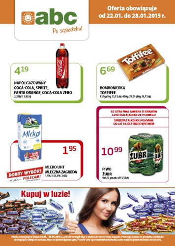 Nowa gazetka promocyjna sklepów ABC. Polecane promocje z gazetki ABC: Bombonierka Toffifee 125 g - 6,69 zł. Mleko Mleczna Zagroda 1 L - 1,95 zł. Piwo Żubr 4x500 ml - 10,99 zł. Oferta ważna od 22.01 do…