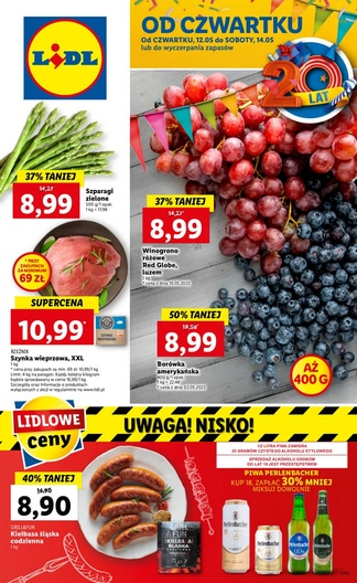 {loadposition linkLidl2} 'Od czwartku' - nowa gazetka promocyjna sieci sklepów Lidl. Polecane promocje z gazetki sklepów Lidl: Winogrono różowe Red Globe 1 kg - 8,99 zł. Borówka amerykańska 400 g - 8,99 zł. Szparagi zielone 500 g - 8,99…