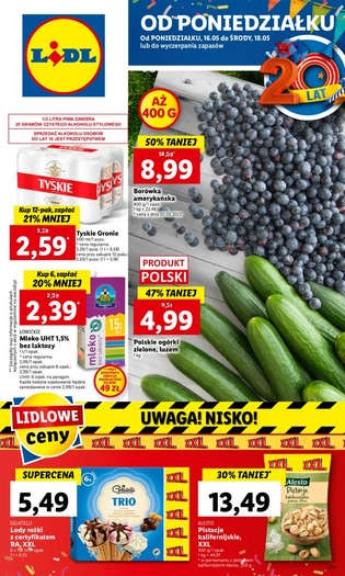 {loadposition linkLidl1} 'Od poniedziałku' - nowa gazetka promocyjna sieci sklepów Lidl. Polecane promocje z gazetki sklepów Lidl: Borówka amerykańska 400 g - 8,99 zł. Polskie ogórki zielone 1 kg - 4,99 zł. Piwo Tyskie Gronie 12x500 ml - 31,08…