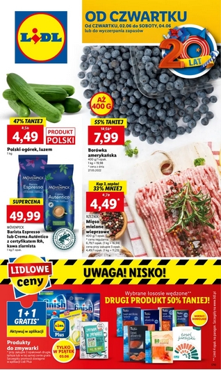 {loadposition linkLidl2} 'Od czwartku' - nowa gazetka promocyjna sieci sklepów Lidl. Polecane promocje z gazetki sklepów Lidl: Borówka amerykańska 400 g - 7,99 zł. Mięso mielone wieprzowe Rzeźnik 3x400 g - 13,47 zł. Polskie ogórki 1 kg - 4,49…