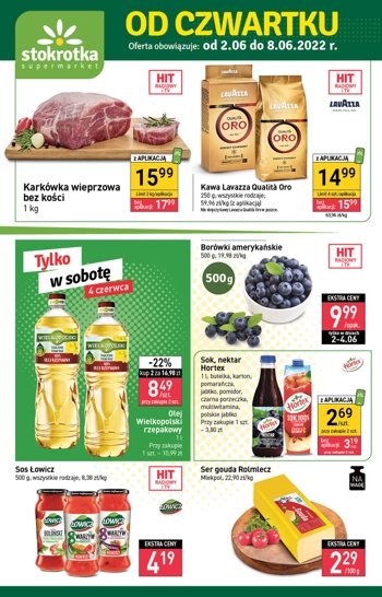 {loadposition linkStokrotka} Nowa gazetka promocyjna sieci sklepów Stokrotka. Polecane promocje z gazetki Stokrotka: Karkówka wieprzowa bez kości 1 kg - 15,99 zł*. Kawa Lavazza Qualita Oro 250 g - 14,99 zł**. Borówki amerykańskie 500 g - 9,99 zł***. …